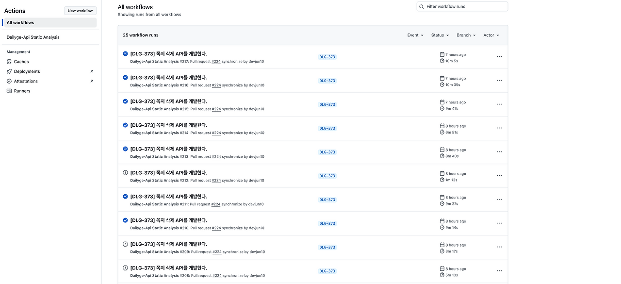 즉, Workflow가 너무 많이 남아서 이를 수동으로 삭제하는 것이 꽤 힘든 상황이었고, 이를 자동화 하고 싶었습니다.
