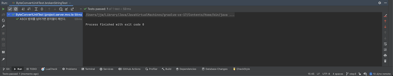 @DisplayName("ASCII 범위를 넘어가면 문자열이 깨진다.")