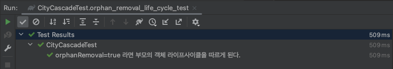 @DisplayName("orphanRemoval=true 라면 부모의 객체 라이프사이클을 따르게 된다.")
