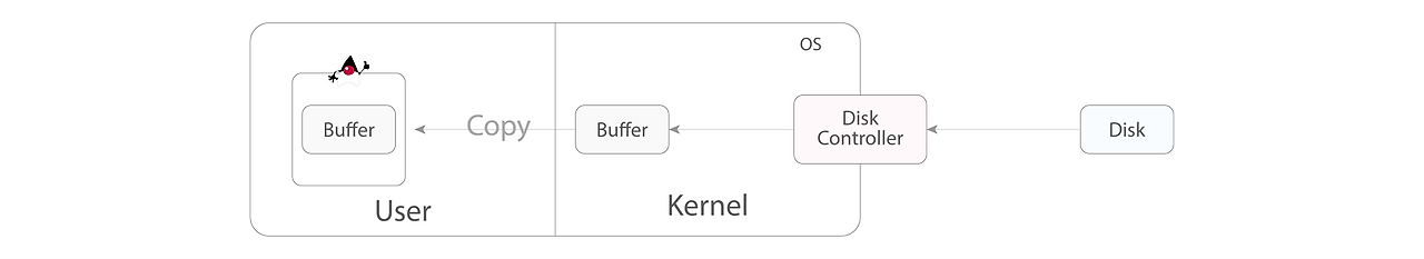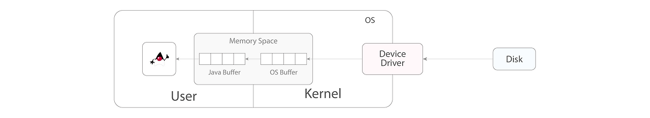 기존의 Java I/O는 커널 버퍼에 직접 접근할 수 없었습니다. 따라서 I/O 가 발생하면 JVM은 커널의 버퍼 영역에서 JVM 내부 메모리로 해당 데이터를 불러온 후에 접근 했으며, 커널 버퍼의 데이터를 JVM 내부 버퍼로 복사 하는 오버헤드가 발생했습니다. 또한 데이터 복사 중인 쓰레드는 블로킹을 당했기 때문에 작업의 효율성이 좋지 못했습니다.