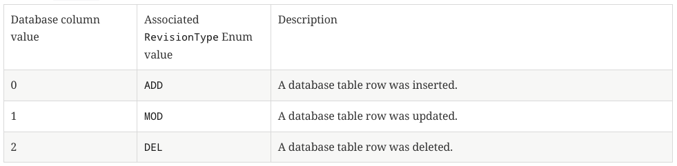 이를 사용하면 테이블에 rev_type이라는 칼럼이 생기며, 이는 테이블의 변경 이력 을 나타냅니다. 각 값은 추가(0), 수정(1), 삭제(2)를 나타내며, 실시간으로 많은 데이터가 쌓이지 않는 경우 유용하게 사용할 수 있습니다.
