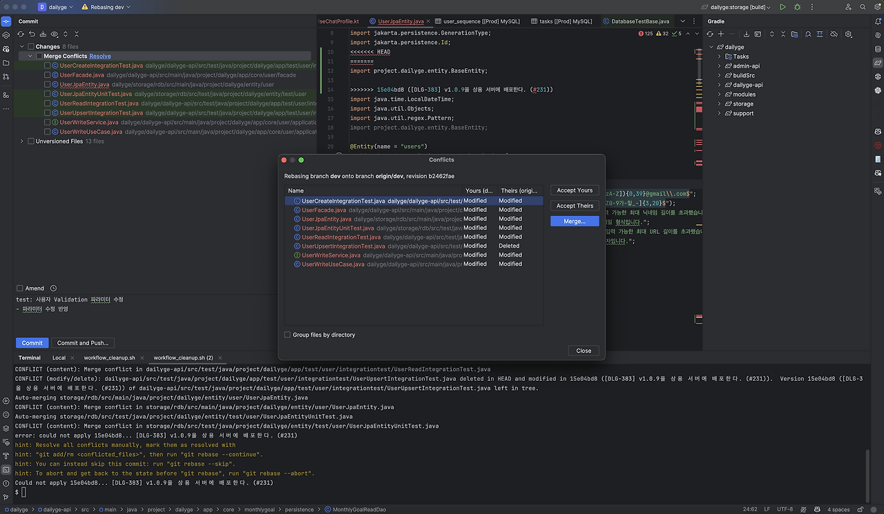 3-4. dev 브랜치에서 prod로 rebase 시도 중 충돌 발생