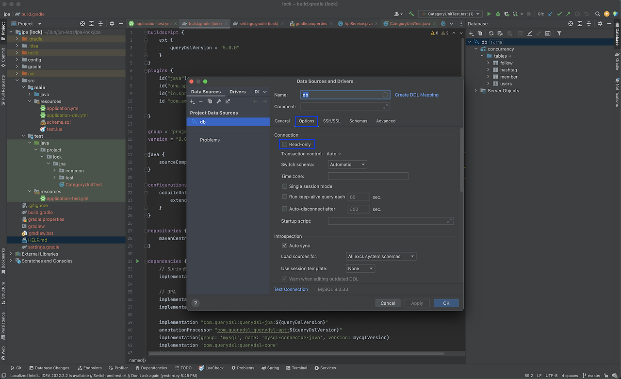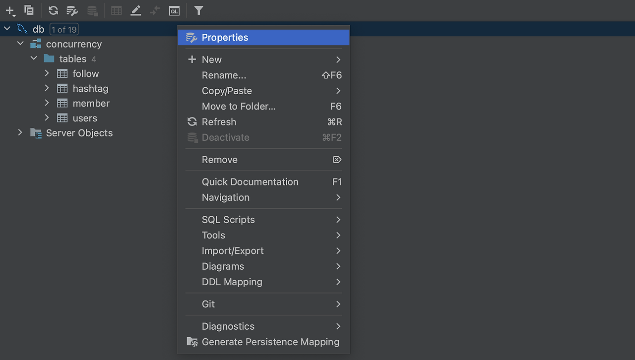 방법은 간단한데, 데이터베이스의 Properties의 Options를 클릭 후, Connection을 Read-Only 로 지정하면 됩니다.