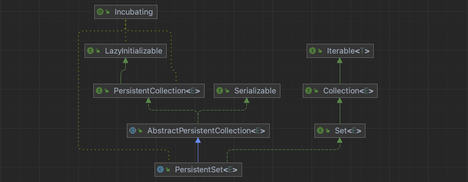 public class PersistentSet<E> extends AbstractPersistentCollection<E> implements Set<E> {