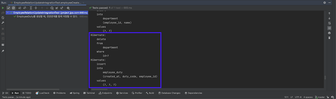 여기서 살펴볼 부분은 update 메서드 인데요, EmployeeDuty의 Set이 들어오면 이를 컬렉션에 추가하거나 제거하는 것이 아닌, 새로 할당해 버립니다.