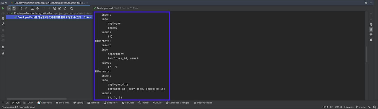 @DisplayName("EmployeeDuty를 생성할 때, 연관관계를 함께 저장할 수 있다.")