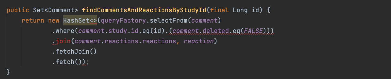 마지막으로 컴파일 시점에 오류를 알 수 있다는 장점이 있습니다. 이를통해 내가 작성중인 쿼리가 올바른지, 틀린지를 컴파일 시점에 알 수 있으며 런타임 시점에 마음놓고(?) 이를 사용할 수 있습니다. **물론 조인 방향이 잘못되었거나 없는 데이터를 조회하는 등 잘못된 방식, 없는 데이터를 조회하게되면 런타임 시점에도 오류가 발생할 수 있습니다.