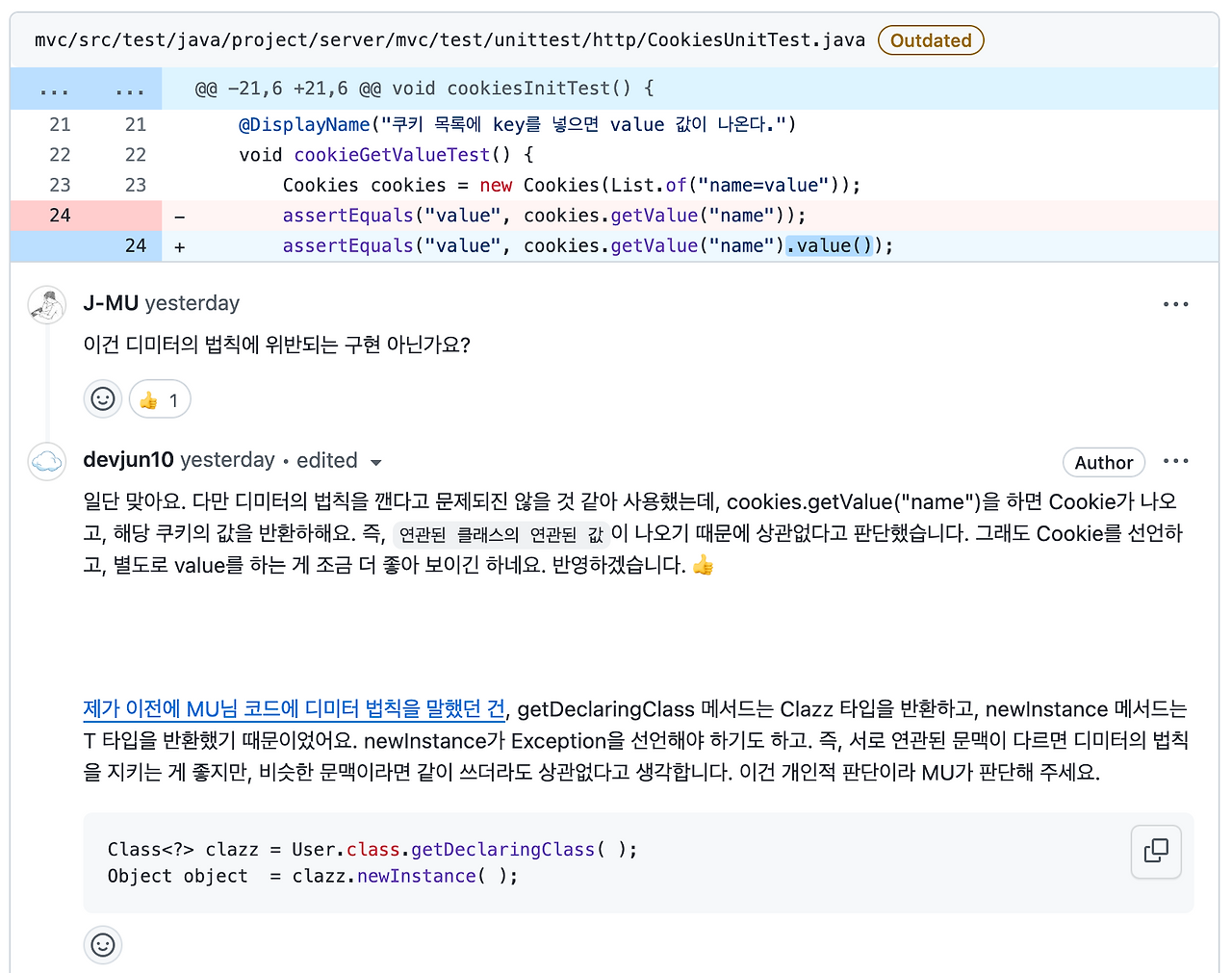 추가로 처음에 달았던 리플렉션과 디미터의 법칙에 대해서도 한 번 살펴보겠습니다.