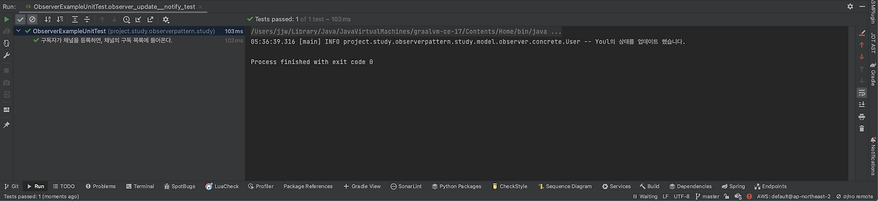 @DisplayName("[UnitTest] 옵저버 패턴 예제 단위 테스트")