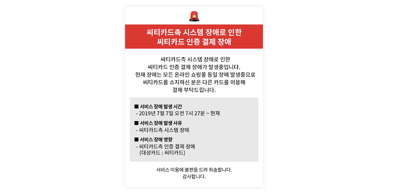 장애가 발생했다면 고객들에게 이를 알릴 수 있는 장치도 필요한데요, 이를 위해 어느 부분에서 장애가 발생 했고, 어떤 기능을 이용할 수 없는지 빠르게 전파할 수 있는 템플릿 도 함께 만들어 둡시다.