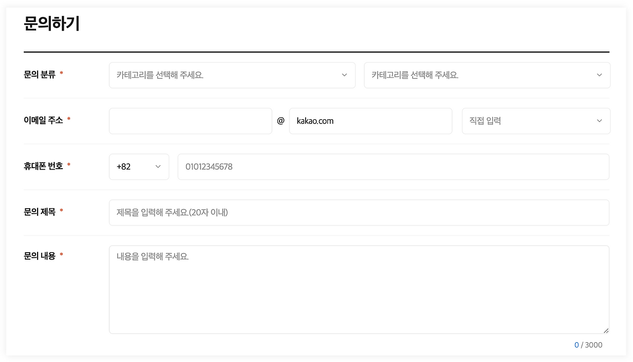 위는 카카오워크 고객센터의 문의하기 사진 입니다.