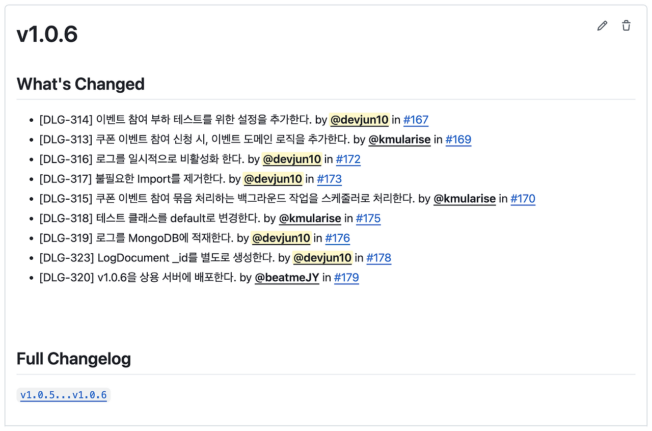 MAJOR: 하위 호환성이 깨지는 변경MINOR: 하위 호환성을 유지하며 기능이 추가된 변경PATCH: 하위 호환성을 유지하며 버그가 수정된 변경
