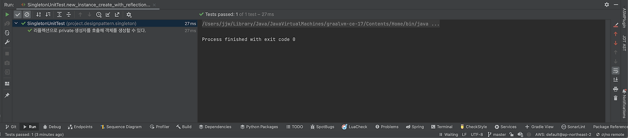 아래와 같이 싱글톤이 깨진 것을 볼 수 있습니다.