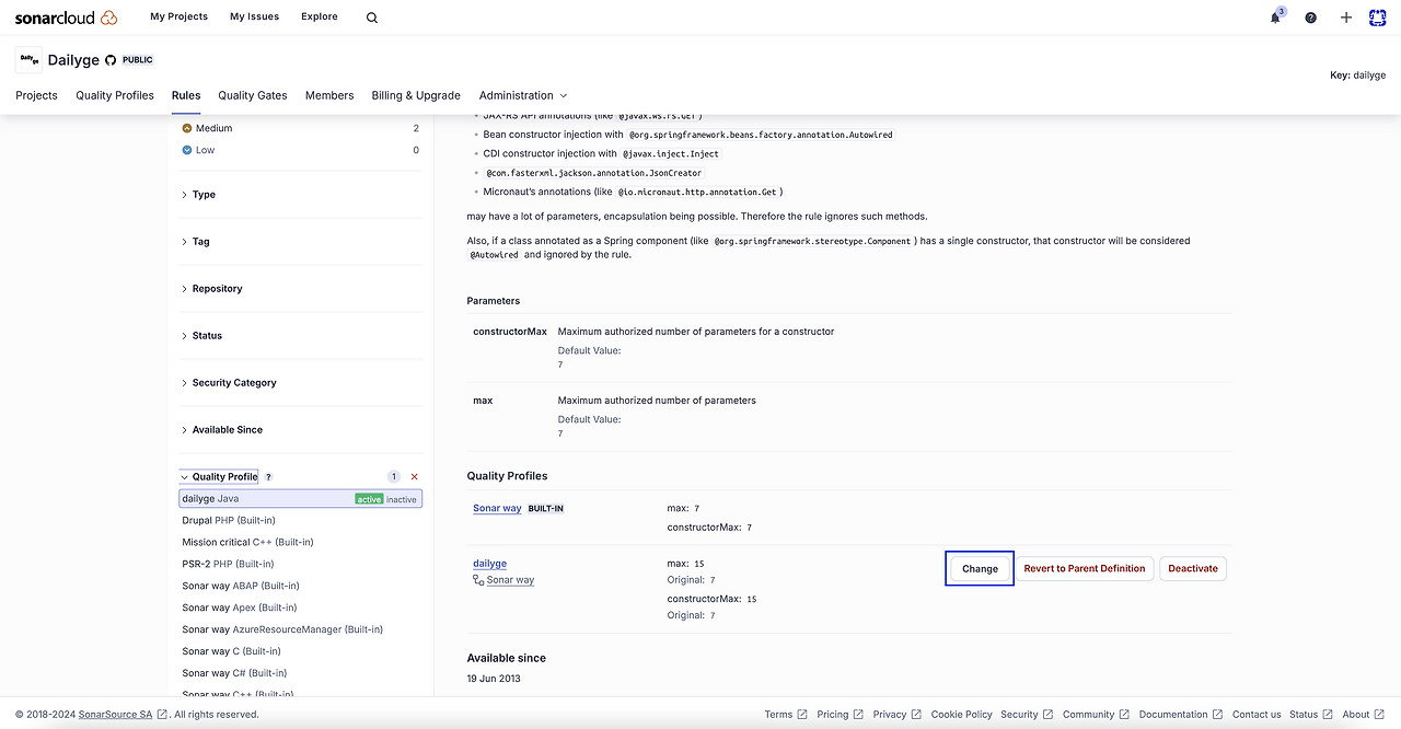 소나 클라우드를 사용하면 Quality Profile 에서 Rule을 조절할 수 있습니다. 소나 클라우드가 정한 규칙이 아닌, 우리가 정한 규칙을 적용할 수 있기 때문에, 프로젝트에 맞게 조절할 수 있는 것이죠.
