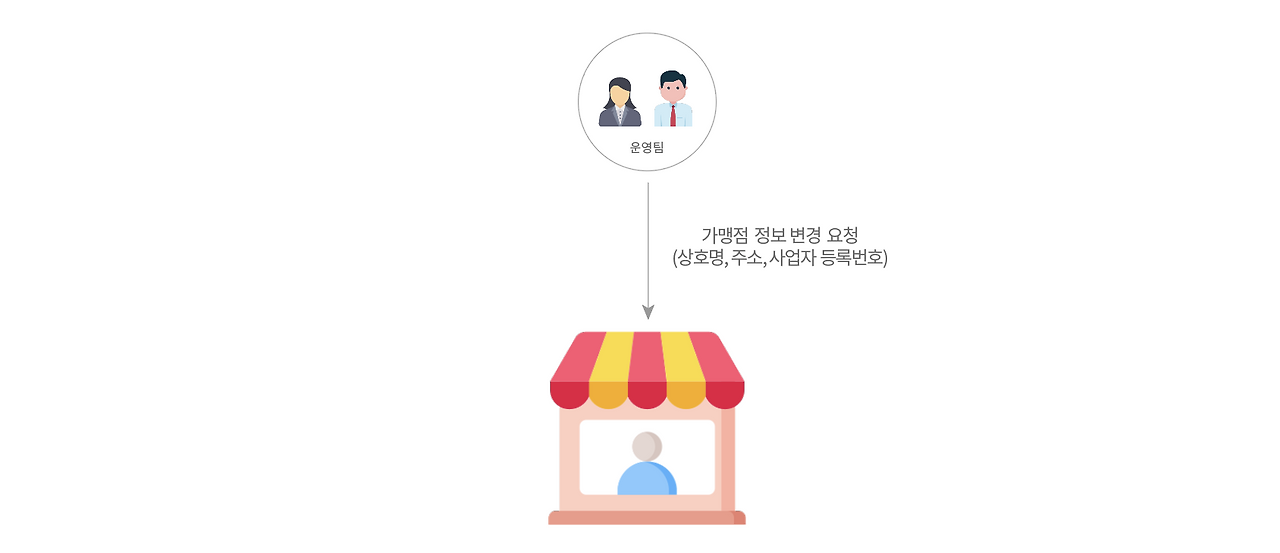 먼저 액터를 살펴보겠습니다. 액터는 시스템에서 변경을 일으키는 사람, 집단, 외부 시스템 등 변경의 주체 를 의미합니다. 예를 들어, 주소, 사업자 등록번호 등 가맹점의 기본 정보는 보통 운영팀, 관리자 등 내부 직원이 변경합니다. 이 경우, 내부 직원이 바로 해당 모듈의 액터가 됩니다.